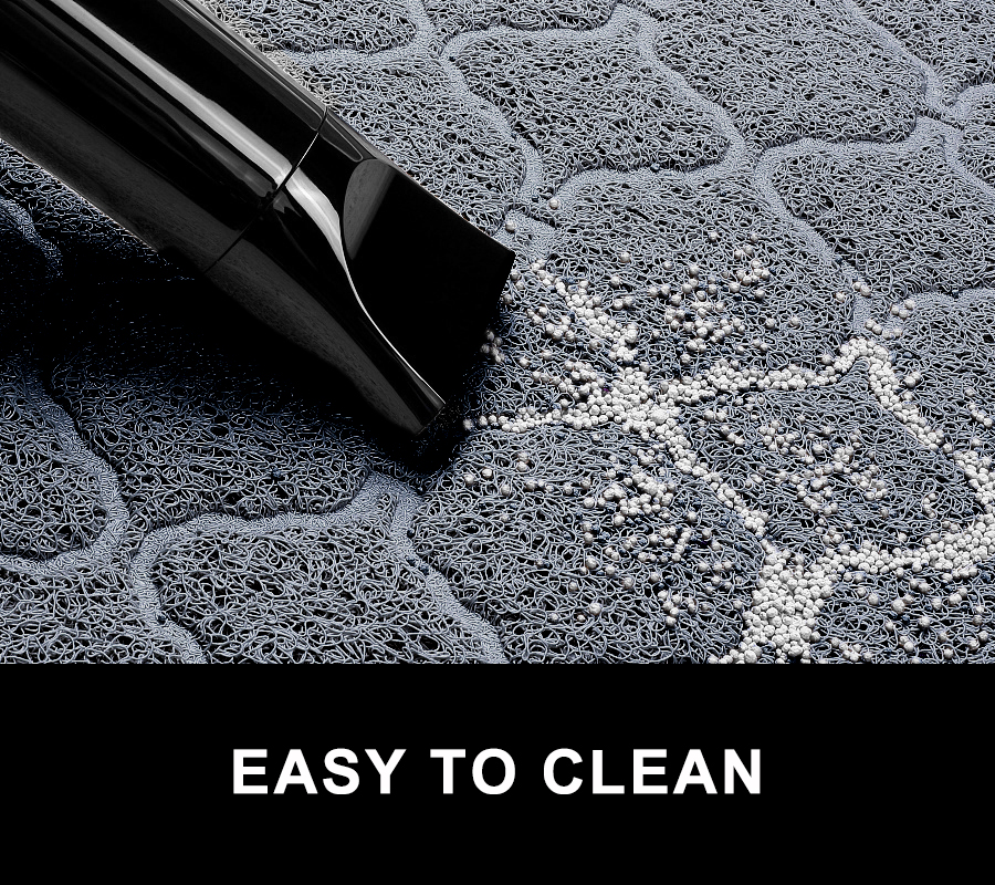 【LARGE SIZE&EASE TO CLEAN】-Large design (35.5'' x 24") is intended for use with a single litter box. This will allow enough room around the entrance to capture any litter that is kicked out.It means less sweeping around the cat box.Your furry friend deserves the best! Plus, it's easy to clean! Simply shake off, vacuum, or soap up and rinse down..In addition, it can also as pet food mat ,door mat,kitchen mat.