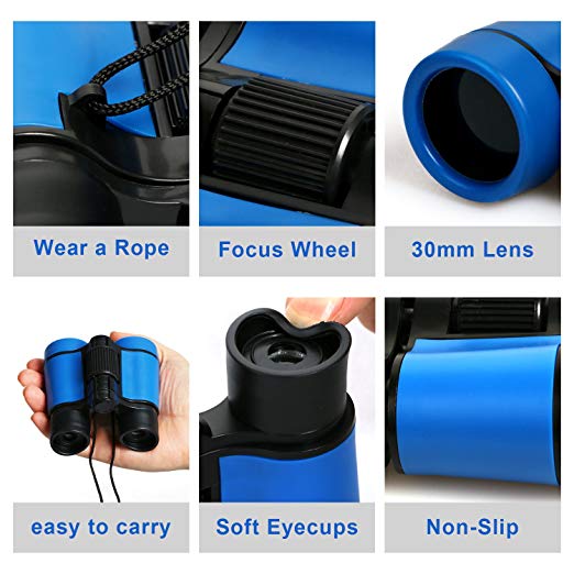 ★A BEST GIFT - The Pocket sized is fit for child .It can be adjusted to fit any eye distance . It has a adjustment knob for children`s eyes. It was made with a soft touch rubber, 4x30mm Adjustable Binoculars for Kids, Quality For The Price