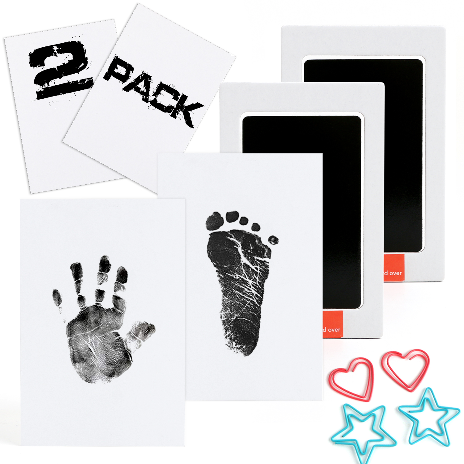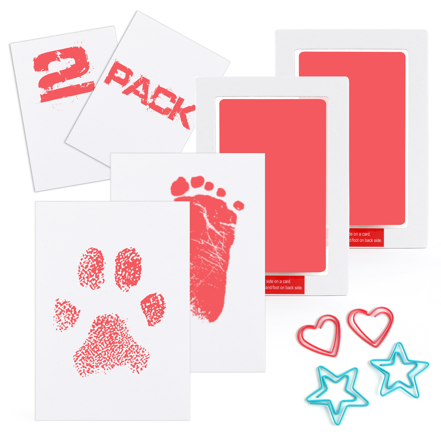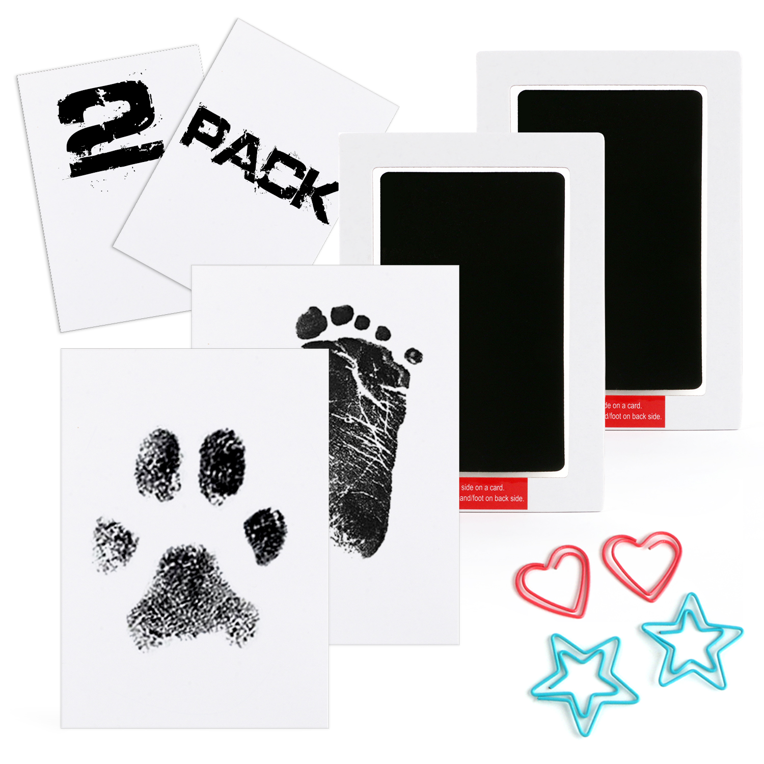 🐾Package Includes: 2 ink pads and 2 imprint cards. Ink pad accommodates hands/feet up to 3.74" length x 2.36" width.