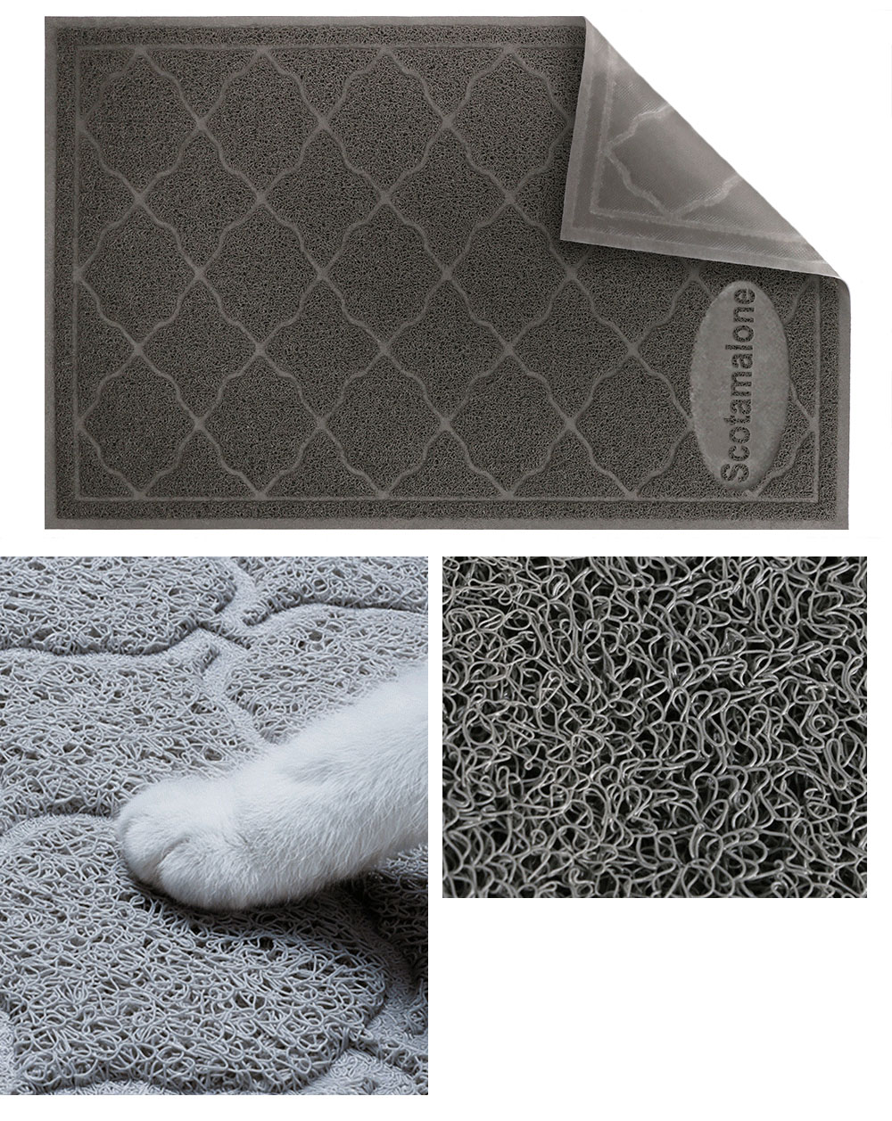 【SOFT&THICK-1/3"】-Scotamalone cat mat with the softest materials to protect even the most sensitive paws. Plus, our mat is phthalate free, a must for any pet owner. Our cat mat features 1/3" thick material that gently cleans your kitty's paws as she walks across the mat, ensuring that pesky litter stays trapped on the mat and o your floors.