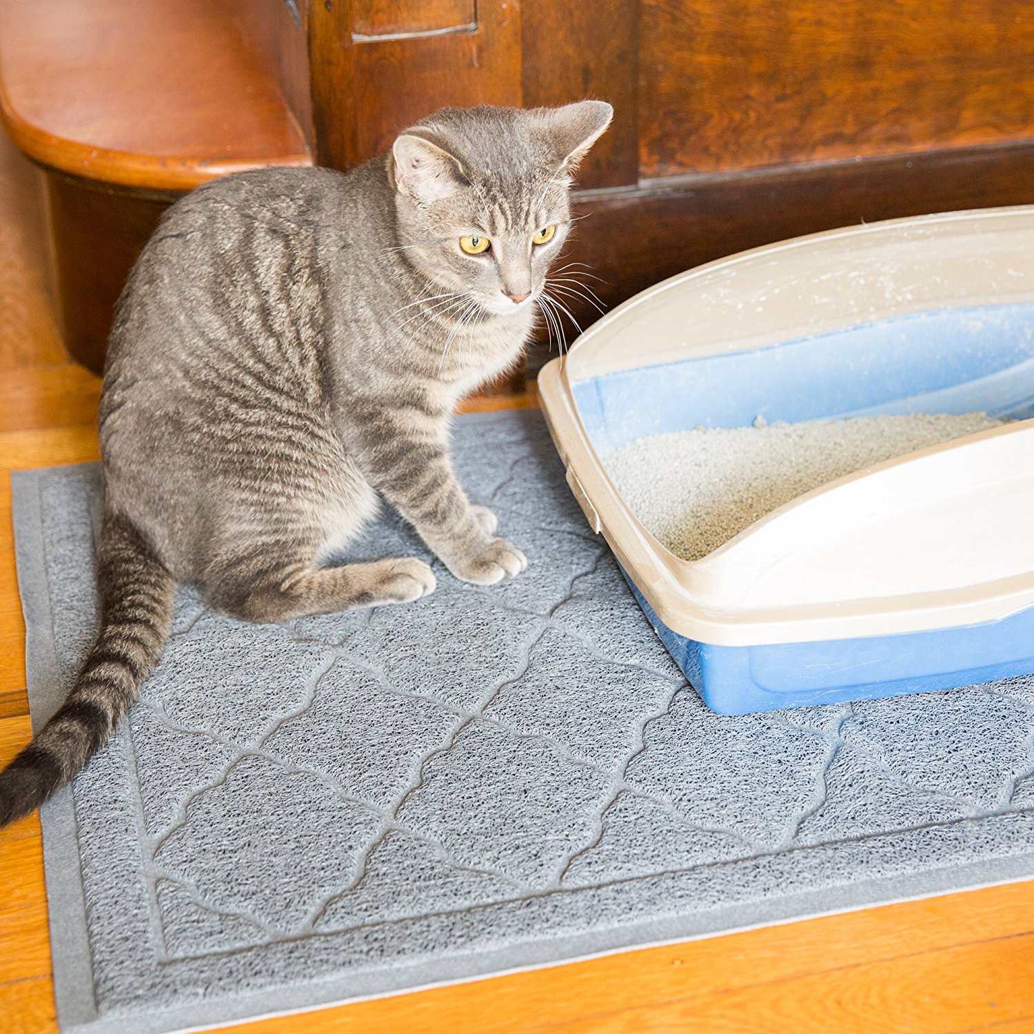 【GUARANTEED DURABILITY】-You are getting tough design, durability, and long-lasting effectiveness. Our non-slip backing keeps your cat litter mat in place . That means the mess stays in the mat, not on your floors.Our mat is designed for use by both clawed and de-clawed cats.