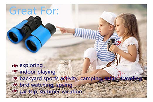 ★SAFETY - Binoculars Are Made Of Nontoxic Natural Rubber Material, Rubber Surrounded Eyepieces Are Included For Eye Protection So Children Don't Hurt Their Eyes Or Face.Designed especially to avoid harm for a young child`s little eyes. Features: Lens with relatively low 4x zoom so your child can examine the world up close; Soft eyecups ensure a comfortable fit; lightweight; Glue-free; Neck strap so your child won’t lose them; Non-slip grip; and is made from quality materials.