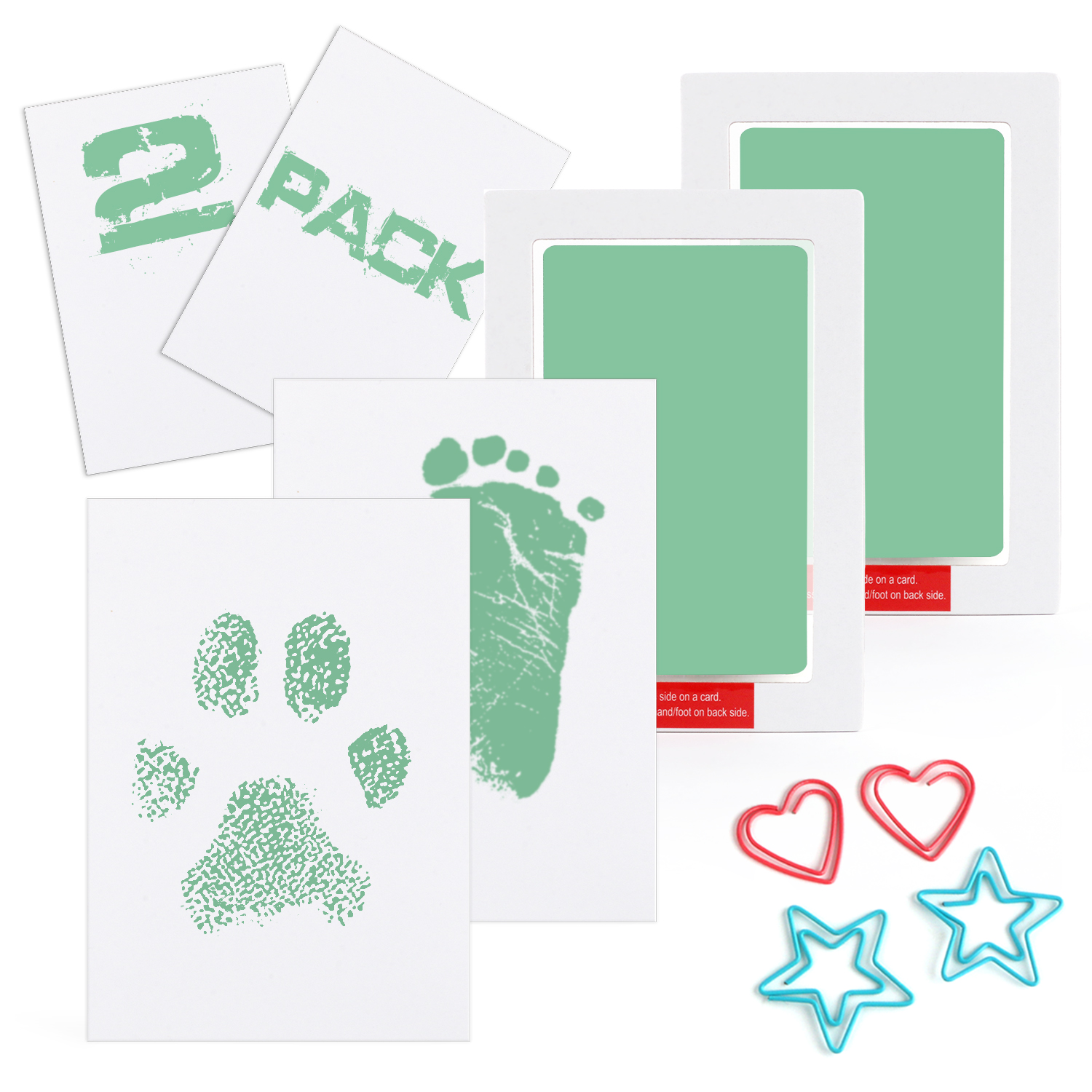 🐾Package Includes: 2 ink pads and 2 imprint cards. Ink pad accommodates hands/feet up to 3.74" length x 2.36" width.